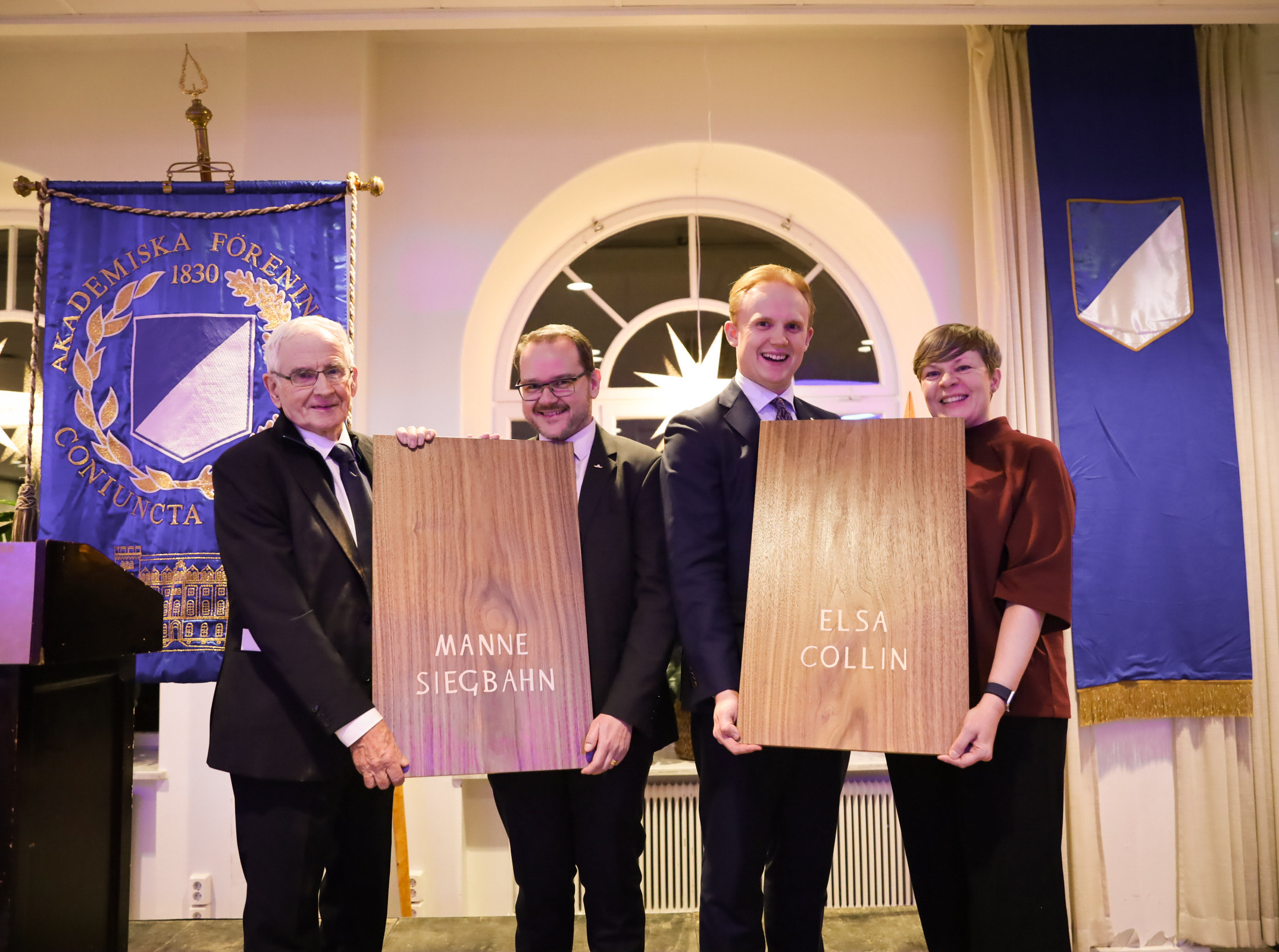 I Akademiska föreningens stora festsal finns, sedan 1867, en rad namn på framstående alumner vid Lunds universitet uppsatta längs med balkongen. Den 22 januari 2026 uppmärksammas fysikern och Nobelpristagaren Manne Siegbahn samt dramatikern och spexpionjären Elsa Collin vid ett högtidligt symposium.